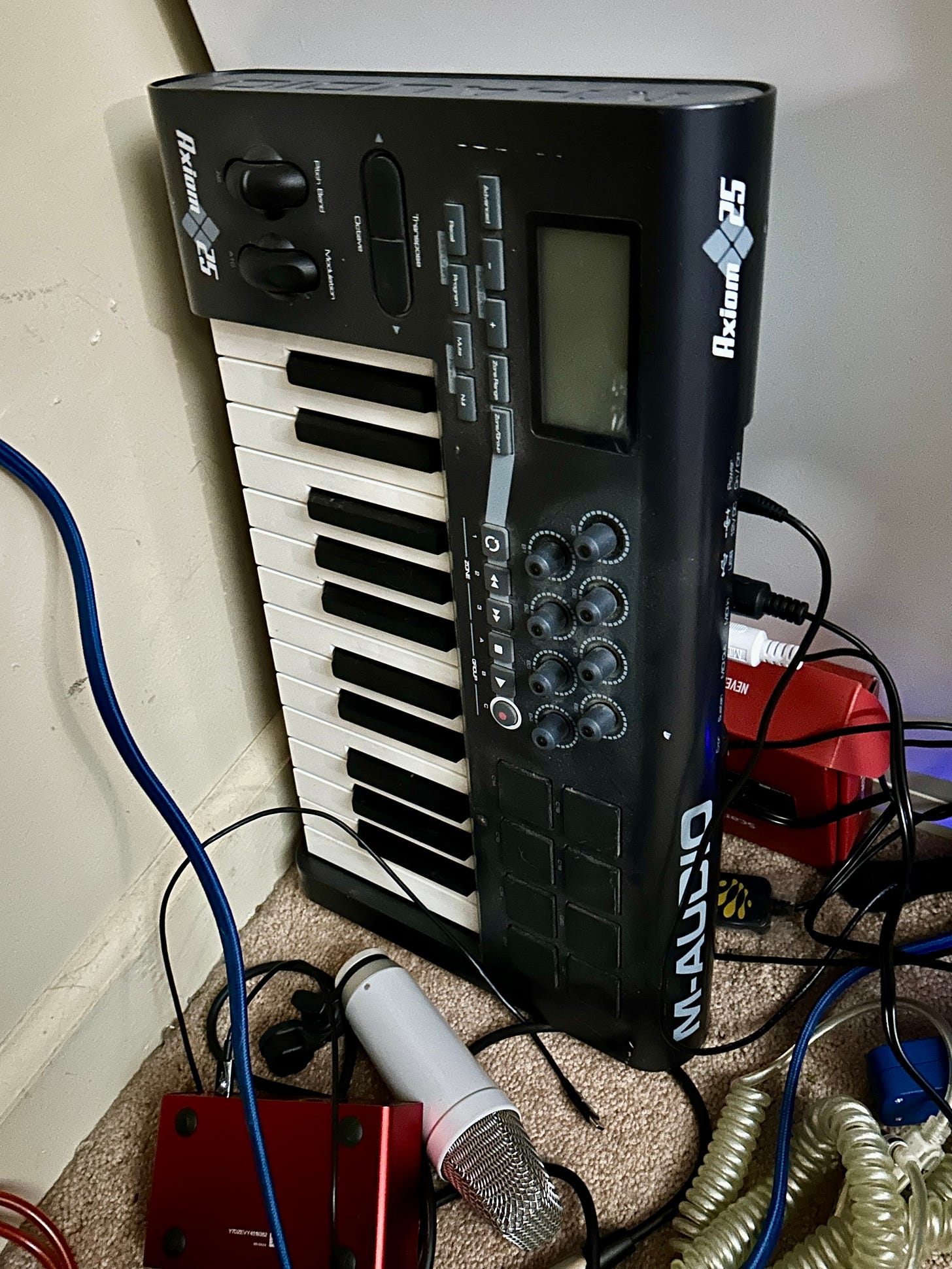 The Axiom 25 is fairly outdated — it was originally released in 2010 — and this one definitely needed some cleaning and a new power supply; whoever tossed it probably did so because its USB jack was broken. But with the help some of MIDI cables, I was soon able to get it working in conjunction with GarageBand, allowing me to access (and play) a wide array of different keyboard sounds.